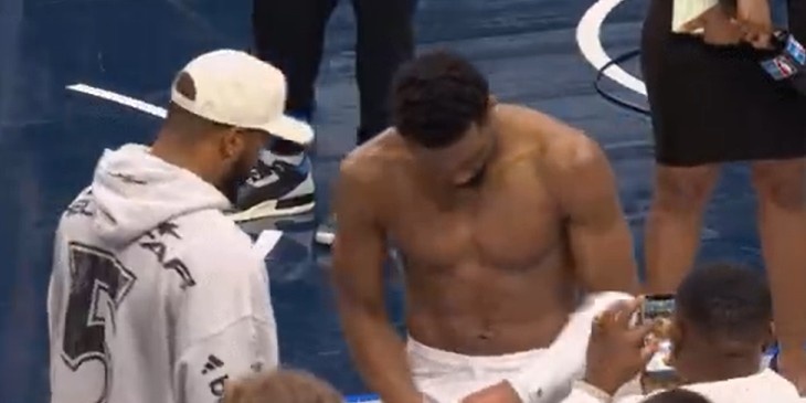 leyu集团-一身腱子肉!米切尔赢球后心情大好 光膀子与NFL球星聊天